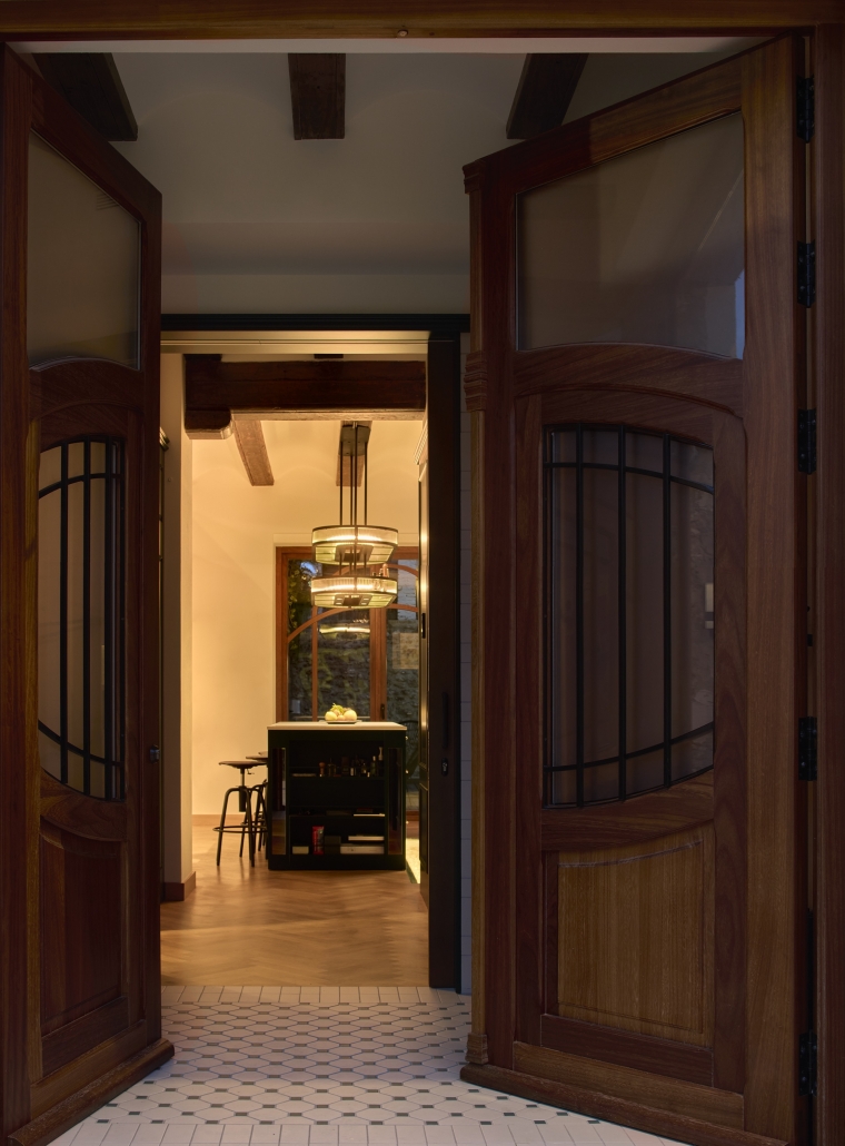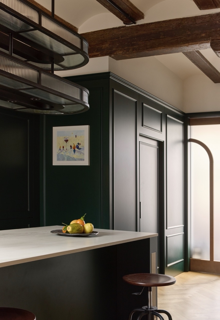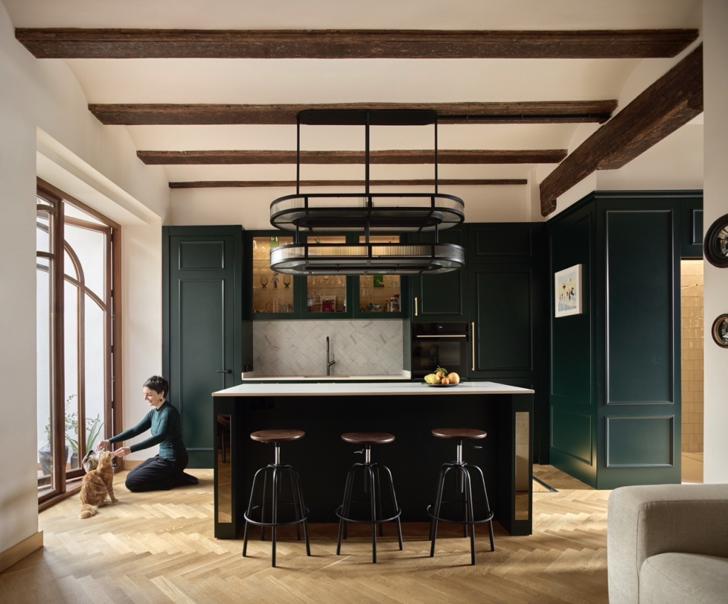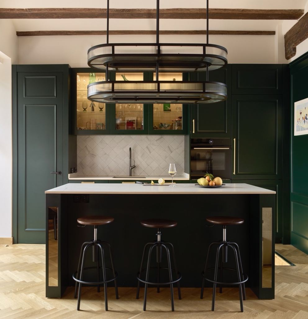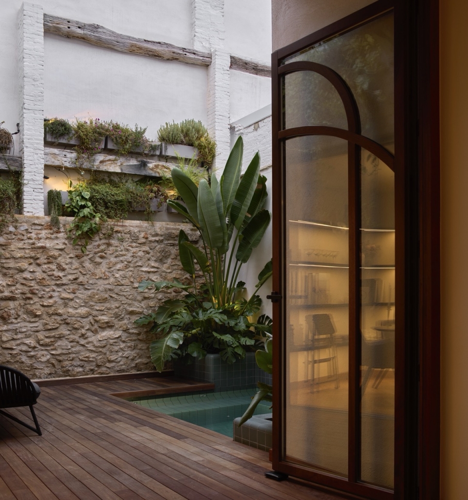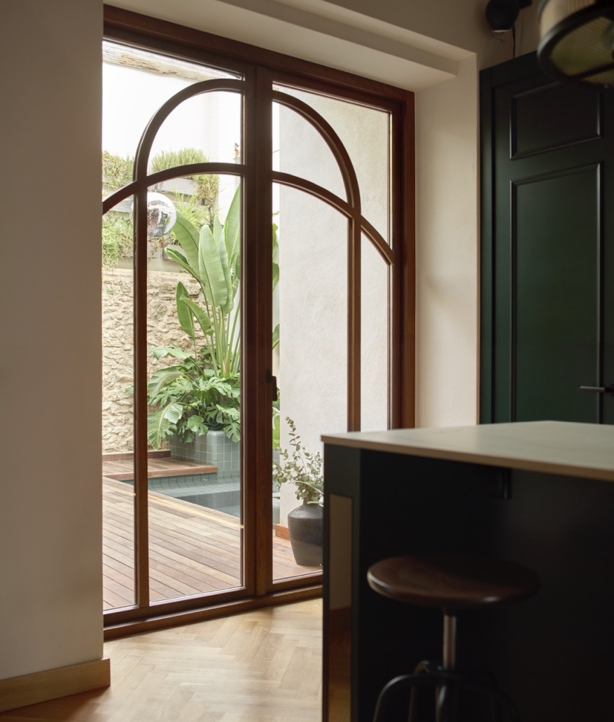 El inmueble se sitúa en una zona de gran valor arqueológico, lo que implicaba asumir una serie de costes adicionales a cargo del propietario. Sin embargo, también nos permitió conservar y poner en valor elementos históricos que hoy son protagonistas en la zona de estar: un muro con arcos del siglo XVIII y un antiguo camino de piedra que decidimos mantener visible bajo un cristal integrado en el centro de la cocina.